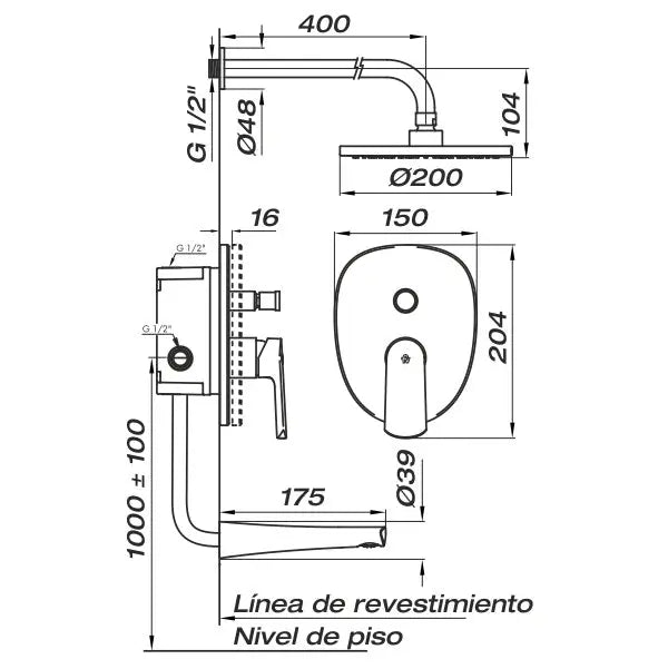 - Caudal mínimo de alimentación de 20 lts por minuto: Por pico 10 lts por minuto / Por ducha 6.5 lts por minuto.